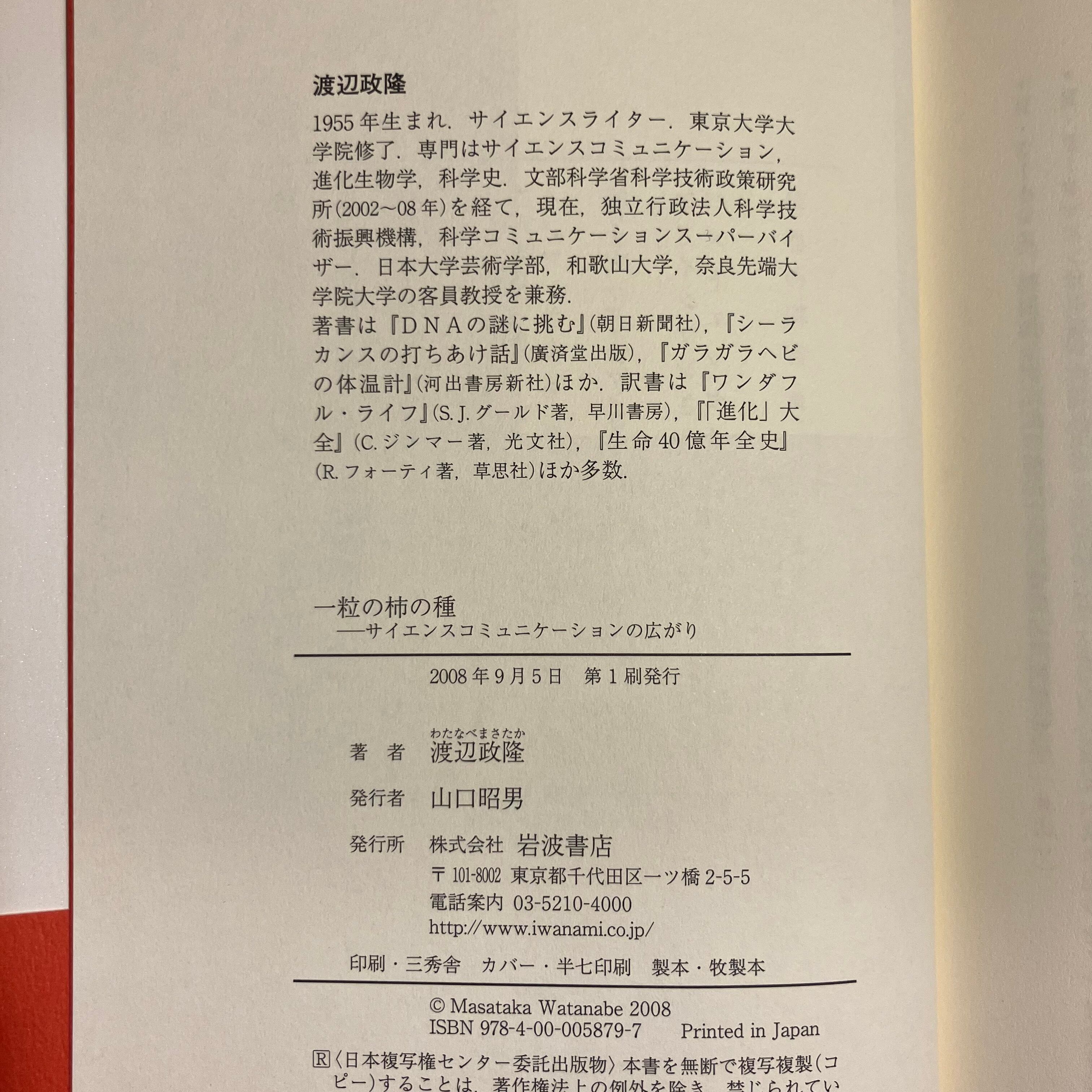 渡辺政隆『一粒の柿の種 サイエンスコミュニケーションの広がり』